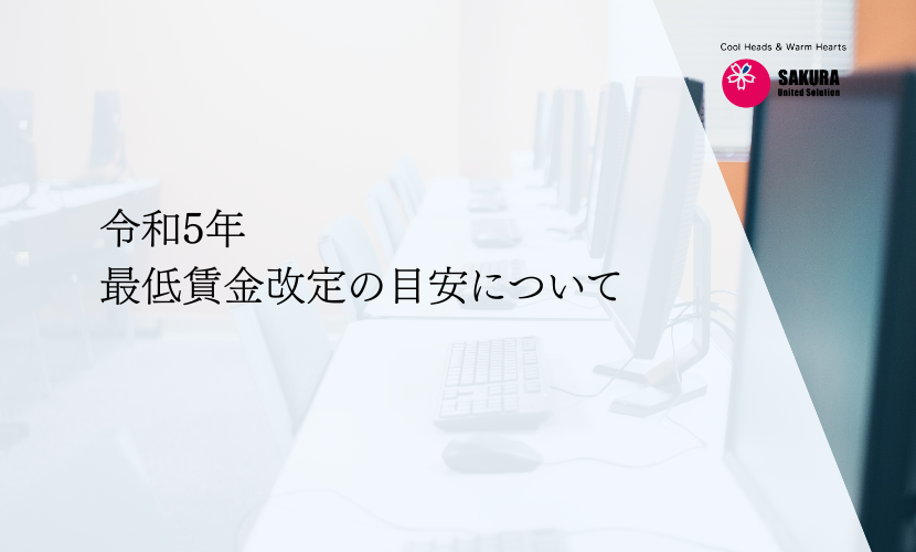 法改正等 さくら労務ニュース 2023年8月 令和5年最低賃金改定の目安について 先般開催されました「第67回中央最低賃金審議会」で、令和5年度の地域別最低賃金額改定の目安について答申の取りまとめが行われました。 これによりますと、各都道府県の引上げ額の目安は、 Aランク41円、Bランク40円、Cランク39円です。 目安どおりに各都道府県で引上げが行われた場合の全国加重平均は、1,002円となります。 表は令和4年度最低賃金|カッコ内は令和3年度となります。